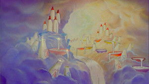 The three little kittens have lost their mittens and are sent to bed without dinner. From their room, they see the Milky Way and sail up to it, using a basket and helium balloons, passing through some fanciful astronomical bodies, until they reach a Milky Way filled with every conceivable form of milk.